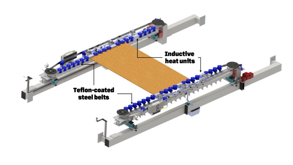 The system introduces an automated method to repair panel edge defects after trimmingโwithout interrupting production. Using a specialized belt and targeted heating, the process enables real-time, in-line repairs, significantly improving efficiency compared to traditional manual methods.